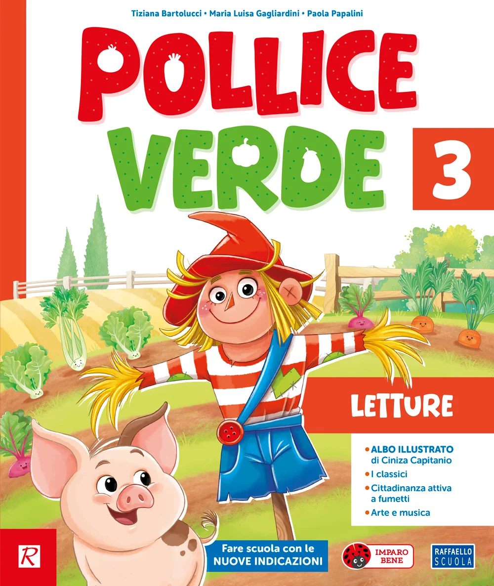 Pollice verde presenta uno sfondo integratore in rima, con tante simpatiche verdure dell’orto, cinque maialini pasticcioni e due bambini Pippi e Tom! Il metodo è disponibile nella doppia versione: